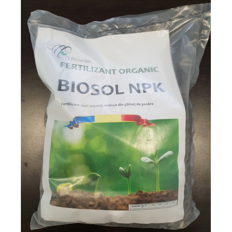 BIOSOL este sursa optima de substante nutritive si humus, fiind un ingrasamant organic sub forma de granule (4-5 mm), de calitate exceptionala la un pret accesibil. Provine 100% din substante organice de provenienta naturala (pasare), continand toate micro si macroelementele necesare plantelor. Ingrasamantul contine un mare procent de elemente organice care sunt esentiale pentru pastrarea fetilitatii solului.